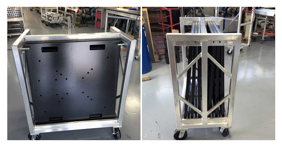 Stacking Floor Base Dolly For twelve (12) floor bases Painted steel construction with 6″ wheels
