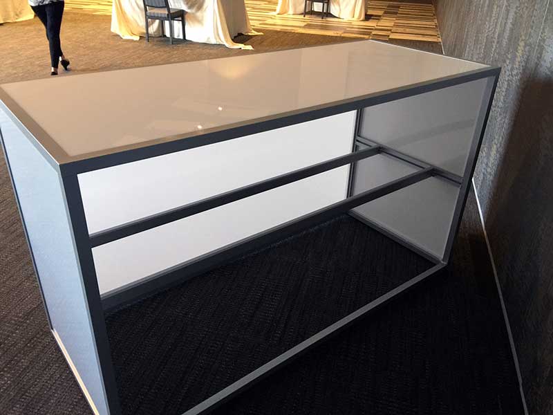 72″w x 30″d x 40″h with 1/2″ Plexi on Top & Two Sides & 1/16″ Plexi on Front
