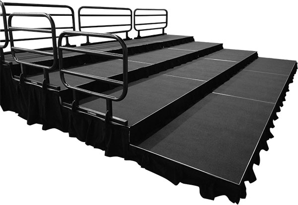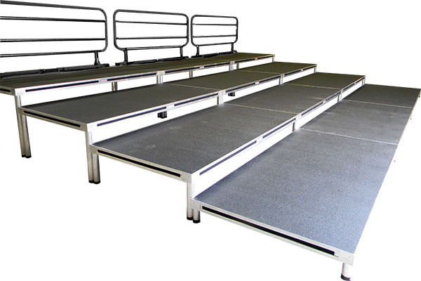 A Choral Riser utilizing 4′ x 8′ decks and legs at 8″, 16″, 24″ and 32″ intervals.